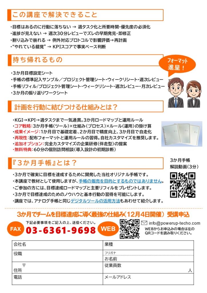 手帳を使った計画・実行スキルが身につくように設計されています。